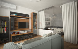 - "open space" - объединяющий гостиную, кухню и спальню;