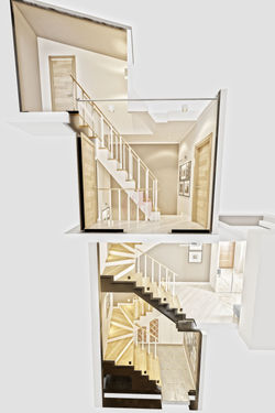 Площадь,особенности: изначально открытая планировка без перегородок и несущих стен, с цокольным и мансардным третьим этажом. Задача - максимально эффективно и функционально задействовать открытое пространство под заданные условия и нужды всех проживающих людей. S = 159 м/кв.